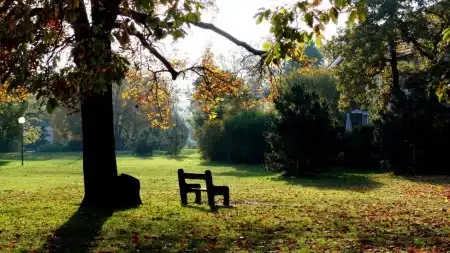 Романтика, осенью скамейки красивые, на них уже никто не сидит, потому что они все в листьях и мокрые... такие пустые и одинокие, хотя несколько дней назад на них всё время сидели парочки)