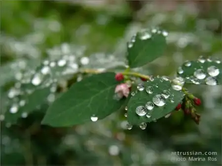 На заре и на закате цветы, деревья, травы покрываются мелкими, кристально чистыми, переливающимися капельками росы. В росе испокон веков люди видели благословение, которое Небо дает земле. Предания сербов говорят, что росу сеют звезды, предания украинцев — что она спадает с богини любви. Другие славянские народы верили, что ее сеют на землю русалки. А античные греки — что она появляется из лунных лучей или из слез богини утренней зари Эос. Ирида, божество радуги, вестница богов, одета в платье из сверкающей росы.