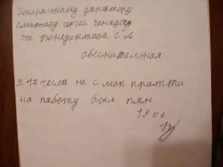 В объяснительной - был пьян