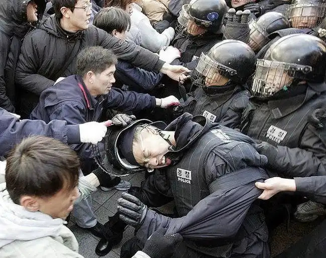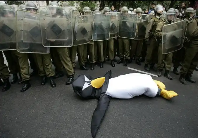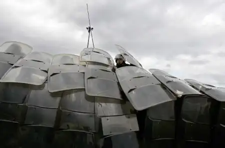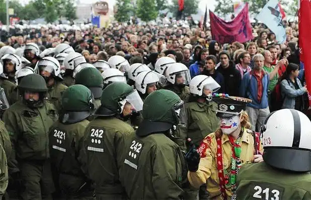 На одной заметил,что менты поменяли дубинки на цветы... Тож ничо,идёт ,такой,прессует всех цветами...)))