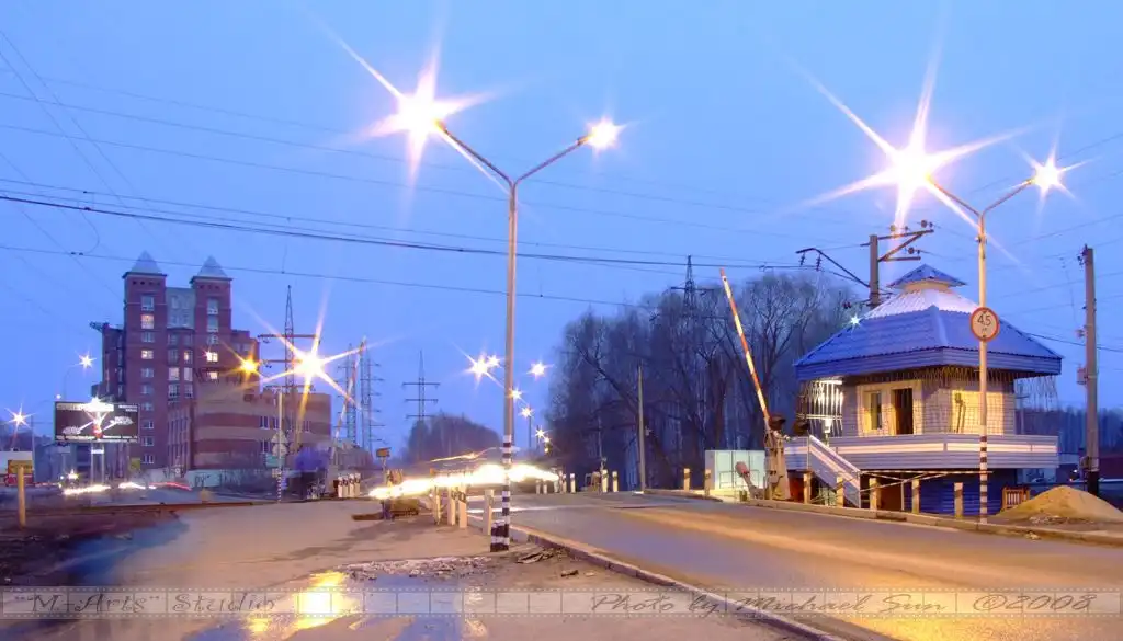 Мокрушинский ЖД переезд, вечерняя съемка, выдержка: 4 секунды.