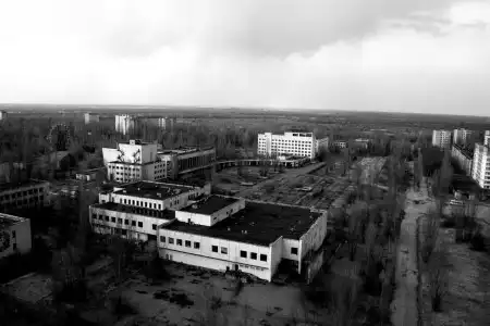 Поправьте, если не прав, но на снимках не Чернобыль. Да и вообще, заинтересовался я что-то этим вопросом, открыл малый атлас мира, который был выпущен задолго до строительства станции. Если верить ему, Чернобыль - небольшой поселок, находящийся на севере в 18-20 км от ЧАЭС.