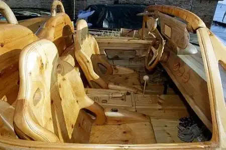 И самое интересное: последняя из работ Ливио – точная копия спортивного автомобиля Ferrari F50. Плавающий «автомобиль» полностью состоит из дерева и оснащен однотактным 10-сильным морским дизелем, развивающим скорость в 5 км/час. Для водных прогулок по живописной Венеции вполне достаточно..