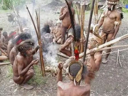Это папуасы из Папуа и Новой Гвинеи? Ну, сожрать врага из соседнего племени- это святое! Нам дай возможность- мы тоже сожрали бы врагов своих с потрохами)))))