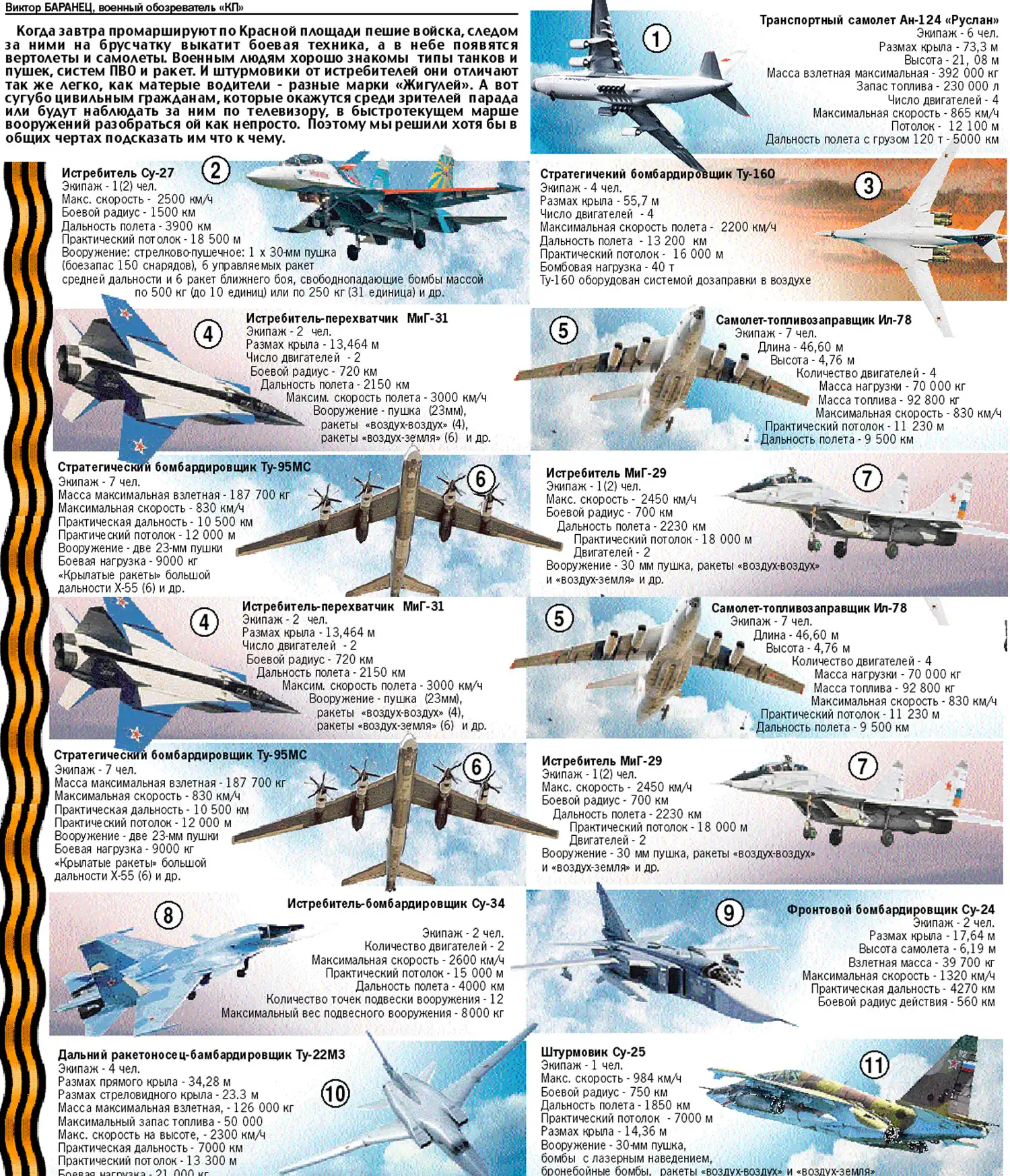 Номера рядом с силуэтами самолетов соответствуют их номерам вверху этой страницы