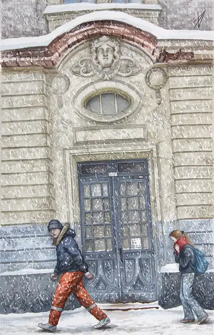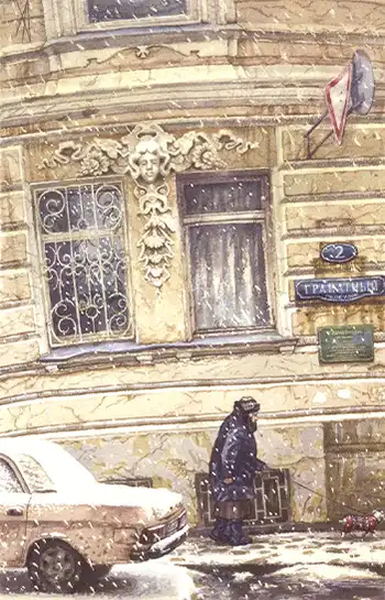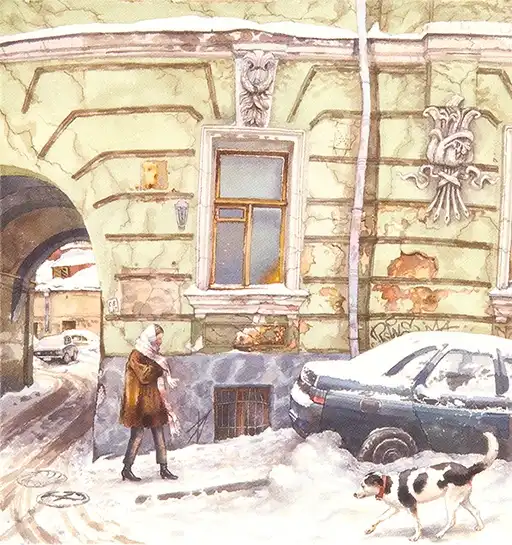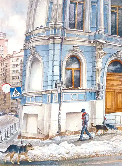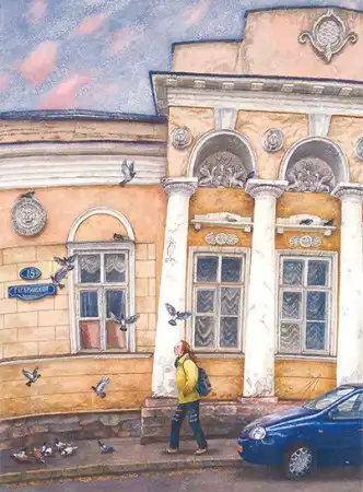 Старушка с авоськой, пес, гоняющий рыжего кота, чудной маленький дом с непомерно большими кариатидами. Они – суть этого города, его прошлое и настоящее. Картины Алёны Дергилевой своего рода терапия и провокация. Потому что после них хочется перестать спешить, остановиться и бесцельно поглазеть по сторонам. Усесться на старую лавочку, скормить кусок колбасы собаке, поговорить по душам со старушками. Остальное подождет. И день этот принесет больше, чем месяцы упорного труда.