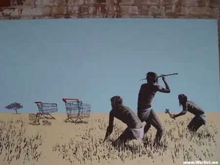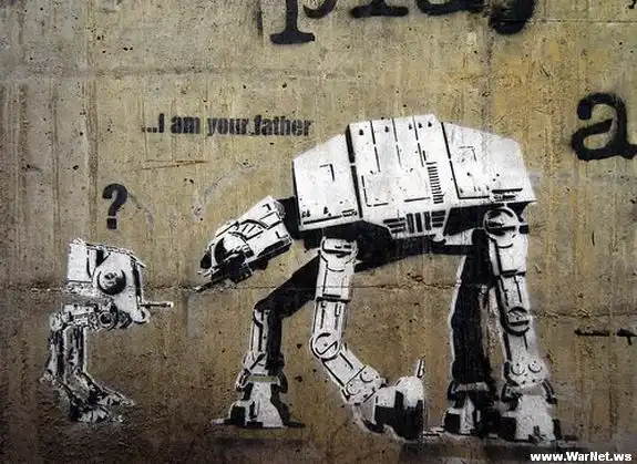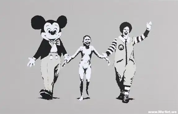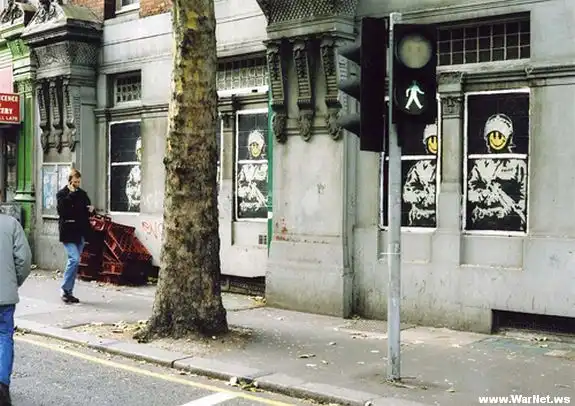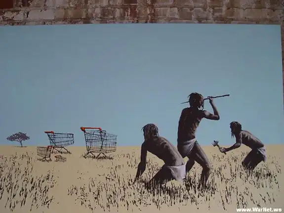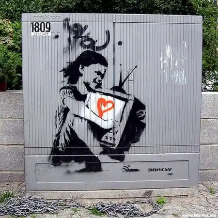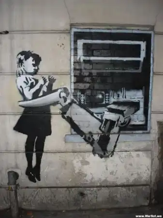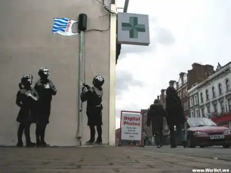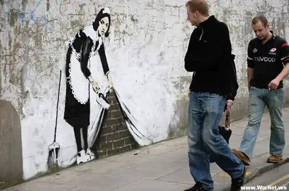 Бенкси вообще молодец. Четко придерживается выбранного имиджа - никто о нем ничего не знает, мало кто с ним когда-либо виделся и встречался. А его трафареты для этих уличных граффити расходятся за огромные суммы (от 300000 долл., если я не ошибаюсь).