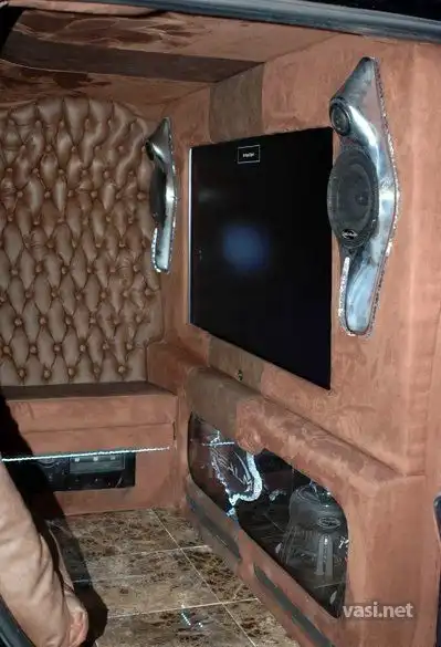 Лимузин”Хаммер Х2” в длину 11 метров. В нем размещаются больше 20 человек, 12 из которых могут танцевать. В машине несколько зеркальных баров, сделанных из мрамора. В них — дорогие напитки, бокалы из богемского хрусталя. На стенах — три больших плазменных монитора и зеркальный потолок, воспроизводящий звездное небо. В лимузине можно устроить лазерное шоу.Такой автомобиль стоит почти полмиллиона долларов.