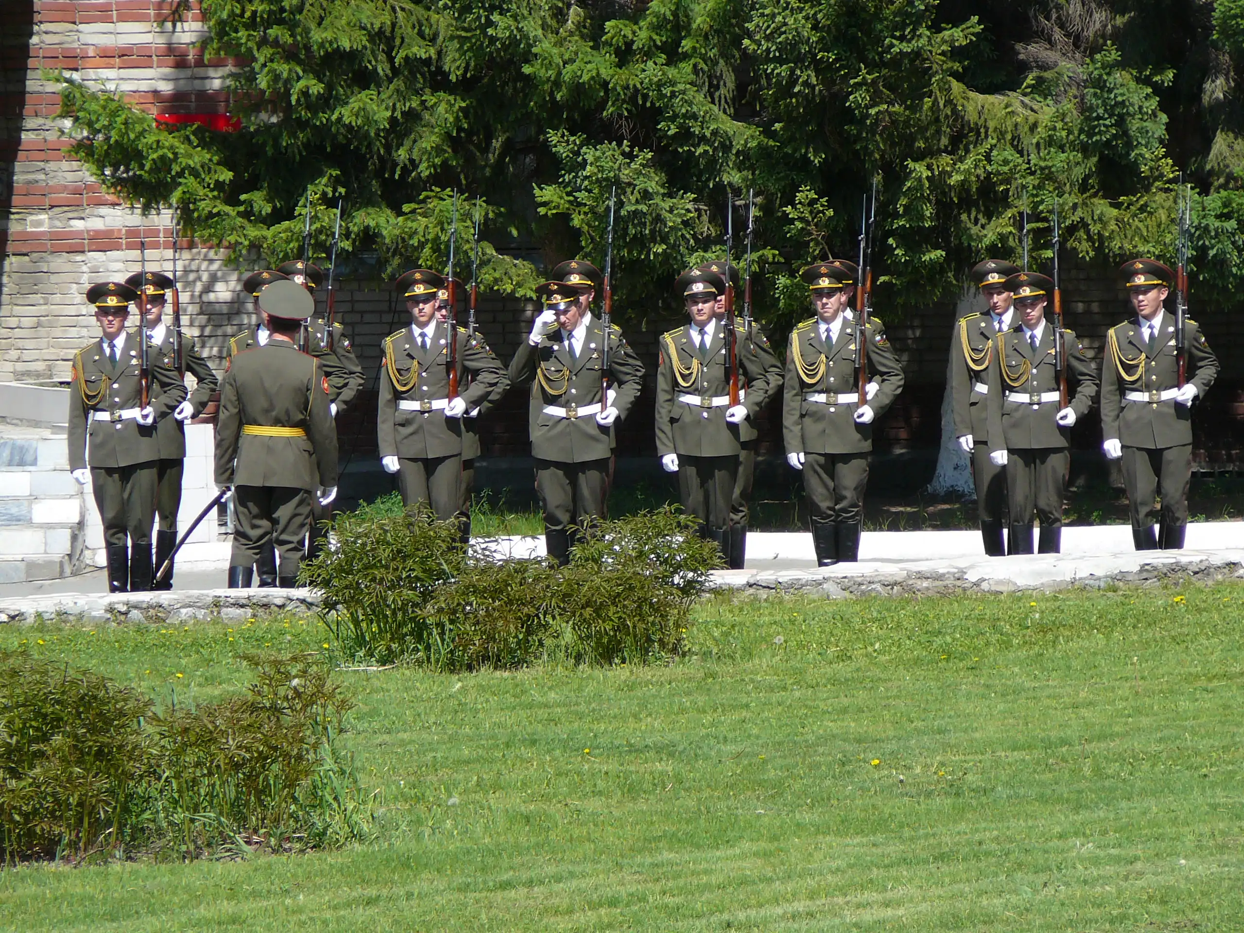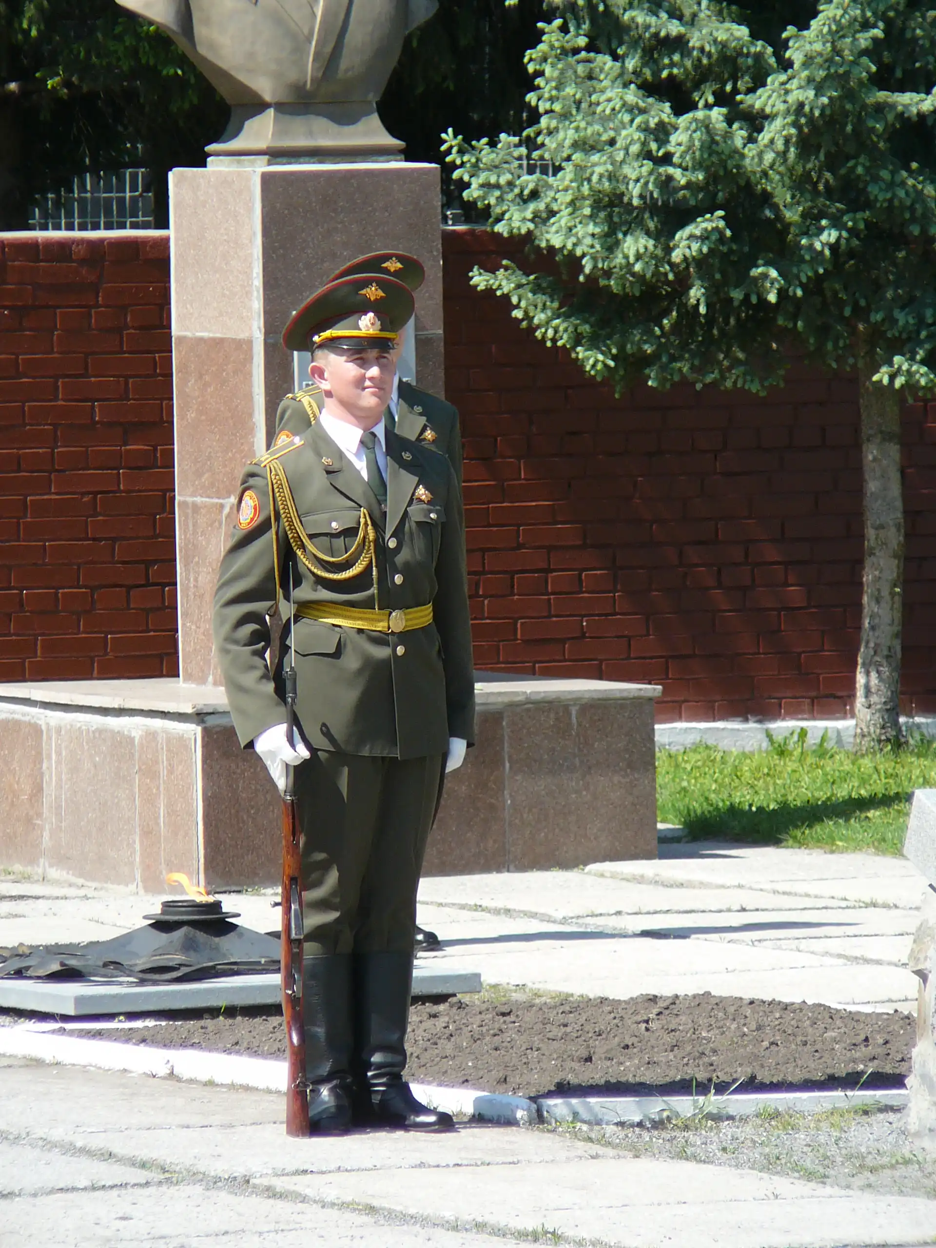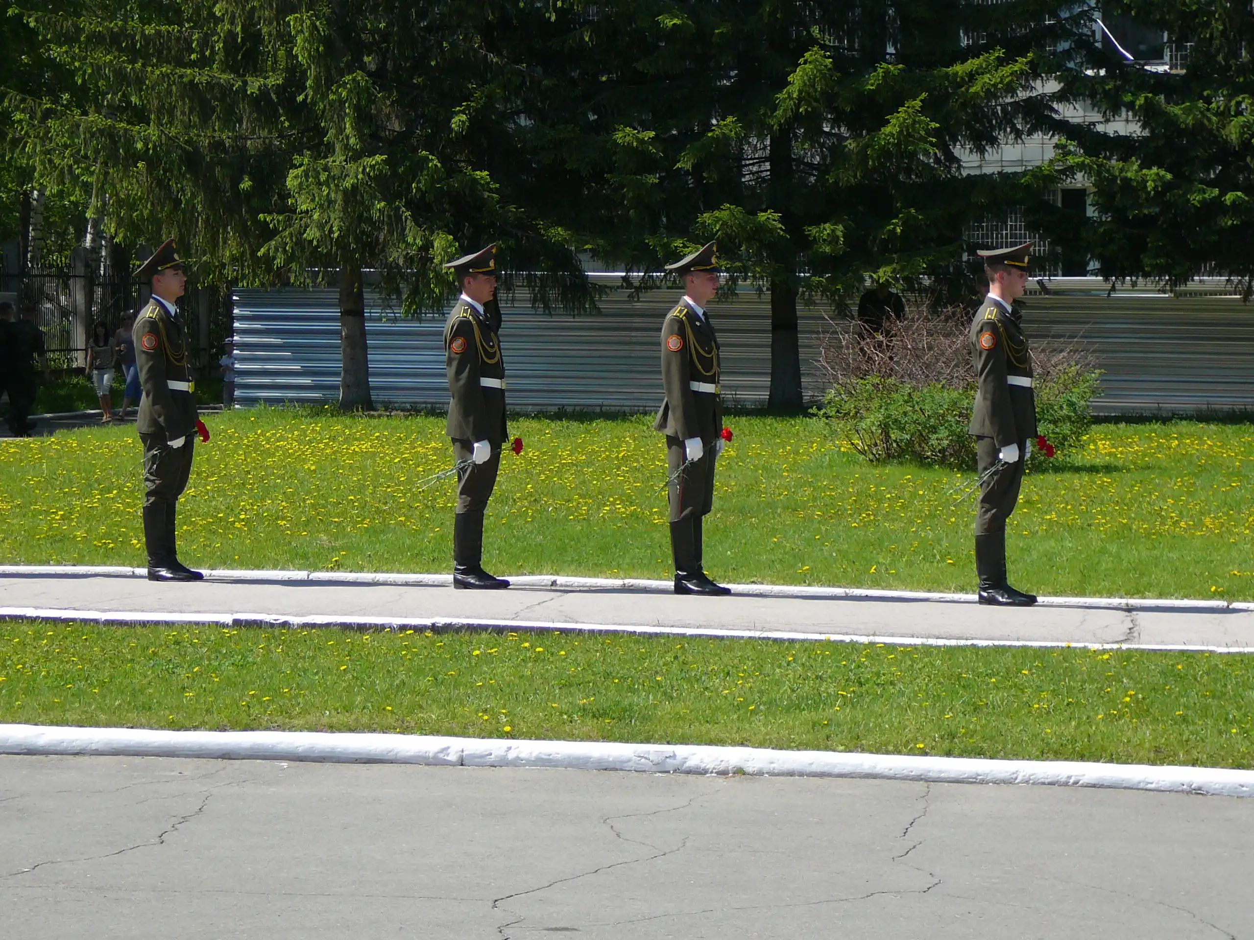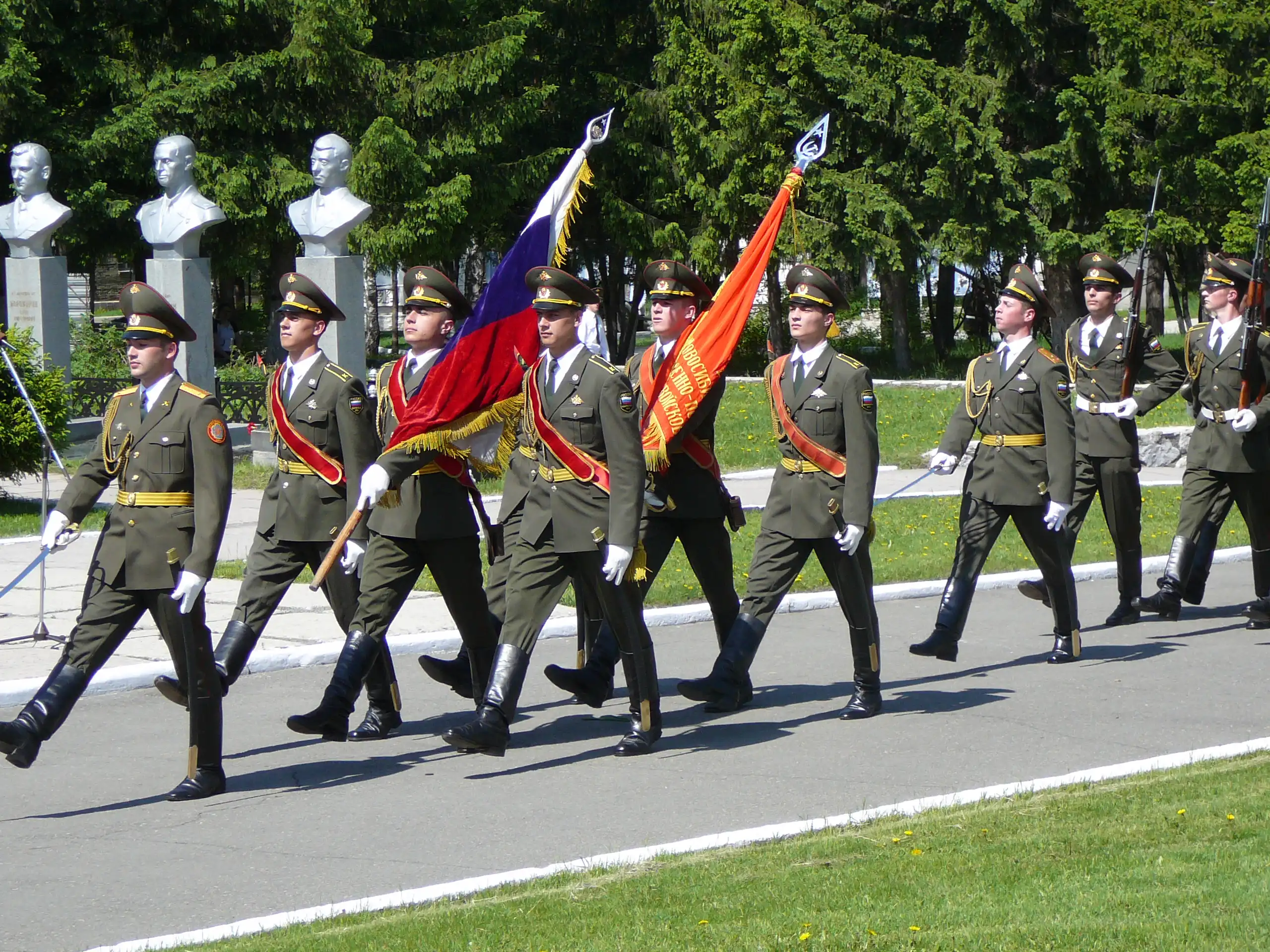 В начале курсанты возложили цветы к памятникам выпускников - героев России и Советского Союза.