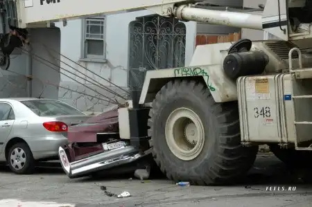 это не кран машину таранил, а машина кран ) видно же