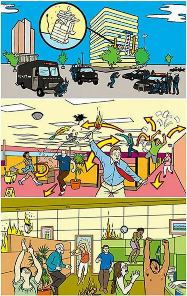 Ха! Сегодня по телеку в новостях показывали типа,который также разгромил свой офис) Пост классный!