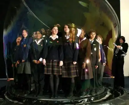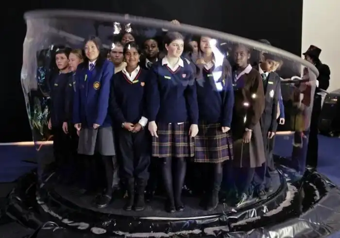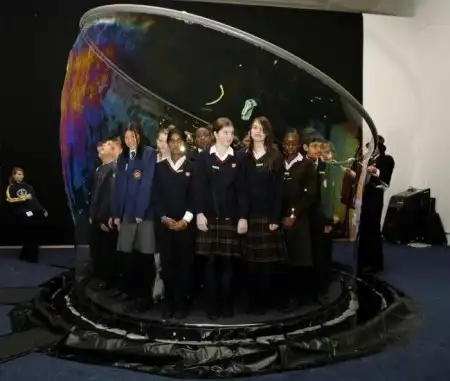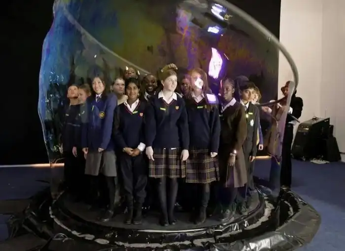 по первому каналу в минуте славе участвовала парочка которая тоже так делала!!! но правда они упаковывали в пузырь одного или двух человек а не весь класс!!!! а кто смотрел знает что получался почти сразу пузырь