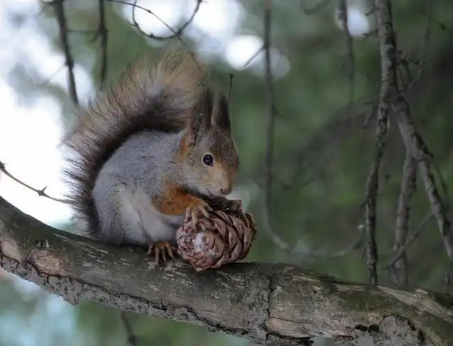 там их дед бородатый кормит. подходит к деревьям, что-то побормочет, и белки к нему за едой бегут!