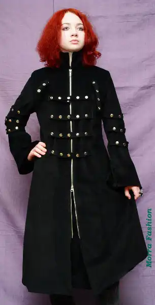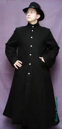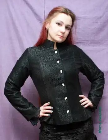 Воротник - стойка. Застегивается на пуговицы в виде камей.