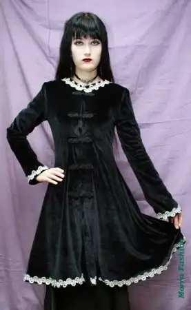 Плащ из черного вельвета с рукавом - клеш на атласном подкладе.