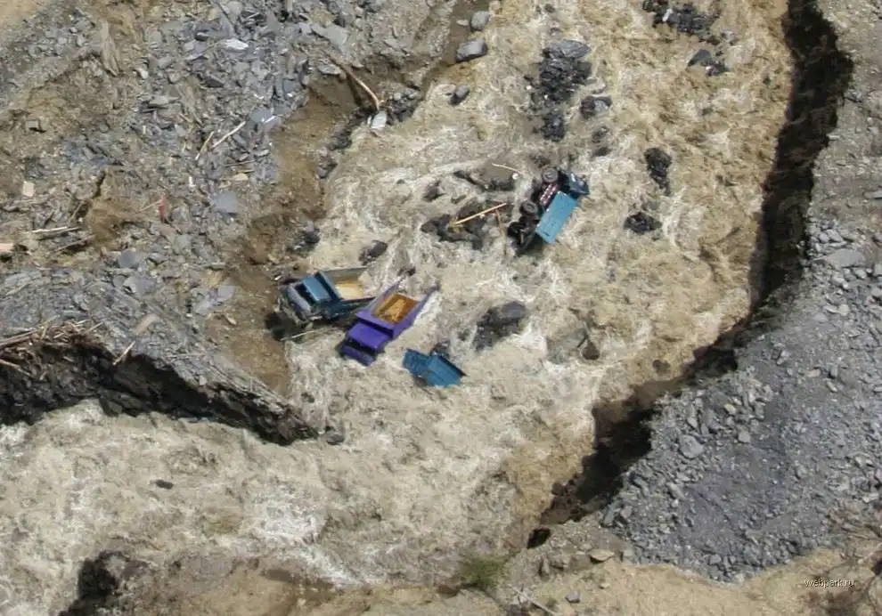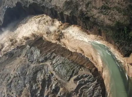 Озеро Tangjiashan в Сычуани 8 июня 2008 года. Уровень воды в озере до землятрясения был 741 метр над уровнем моря, после уровень поднялся на 1,45 метра.