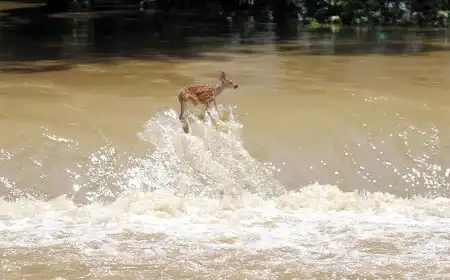 Олень борется за свою жизнь в реке White River, напора воды которой не выдержала дамба! 9 июня 2008 года.