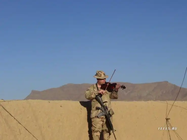 Солдат играющий на скрипке улыбнул) а морда птицы испугала