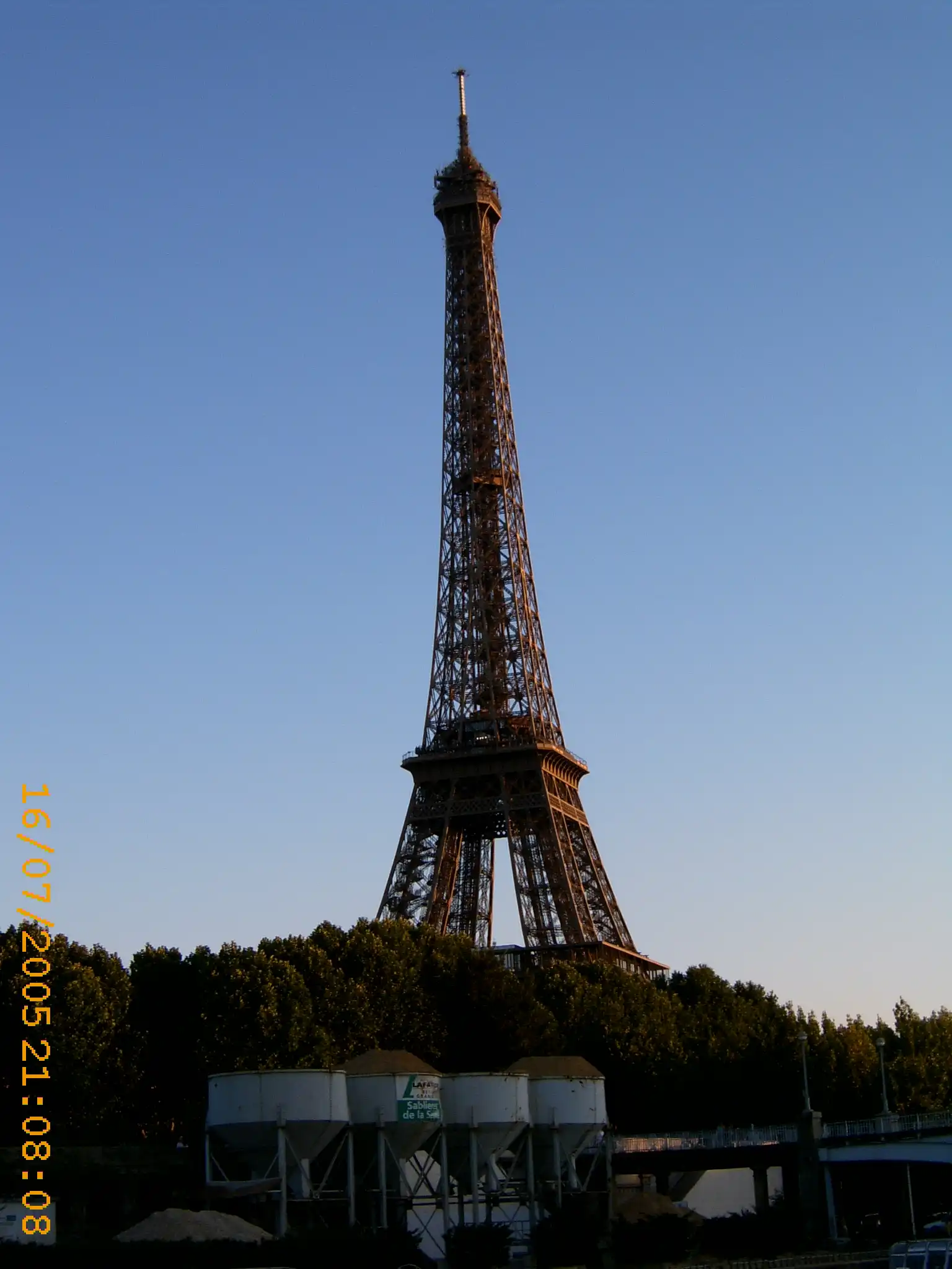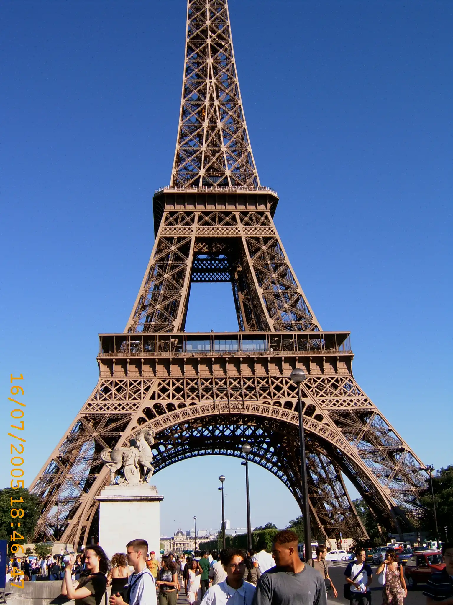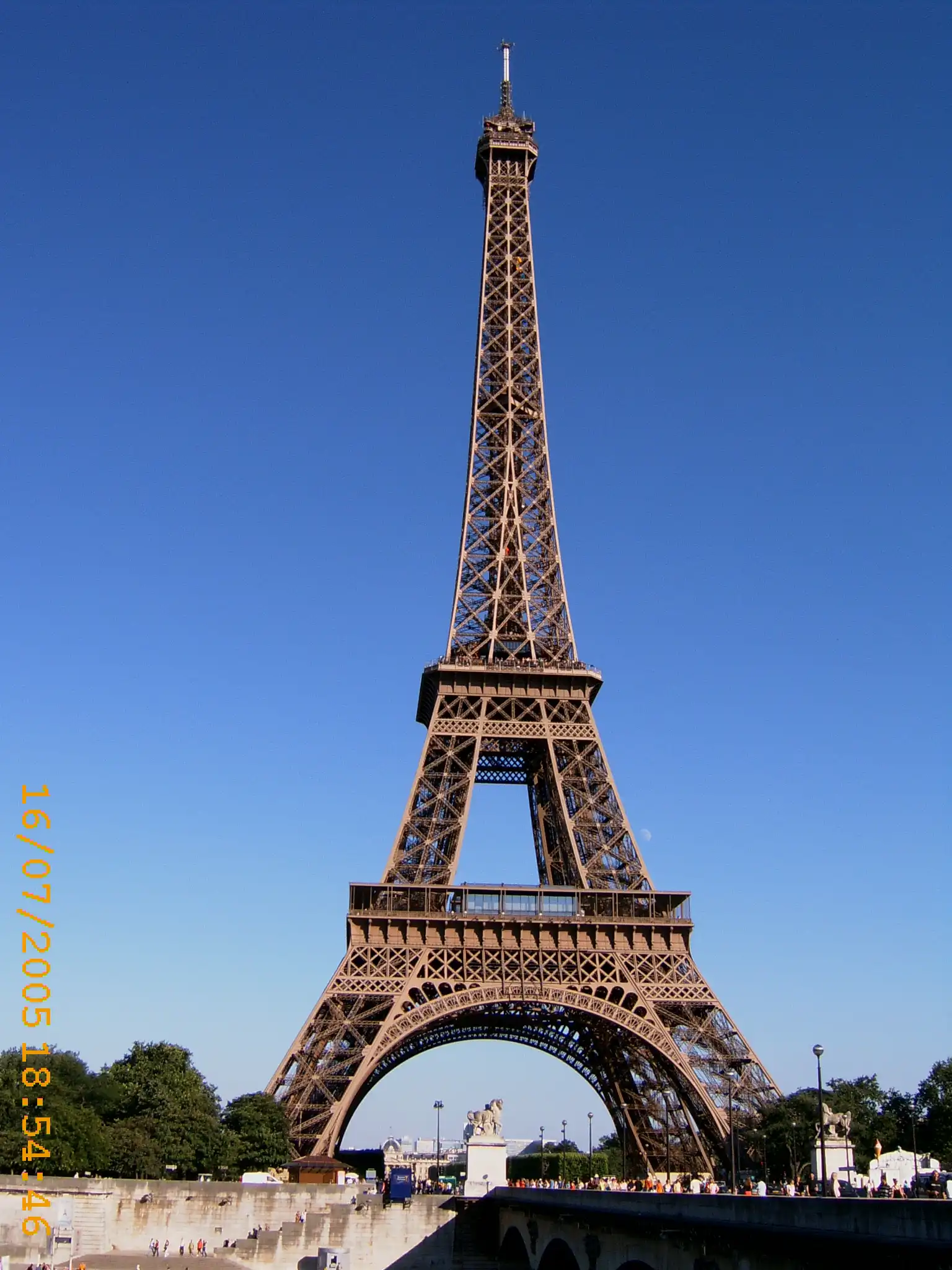 Башня была построена для Всемирной выставки 1889 года инженером Гюставом Эйфелем. Это сооружение состоит из 15.000 сваренных металлических деталей, её вес 7.000 тонн, а её высота достигает 320 м.Состоит башня из трёх уровней: первая платформа находится на высоте 57 м, вторая 115 м и третья 274м. Иногда в дни отличной видимости, взгляд может охватить расстояние радиусом 70 км.