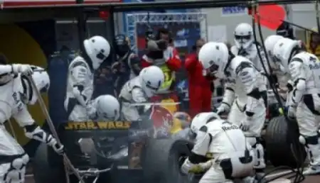 штурмовики кажется позопрошлый год гран-при Монако комада Red-Bull, промо акция, а держатель "леденца" Дарт Вейдер