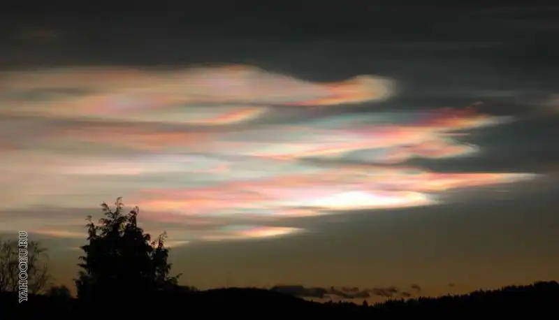 Подобная картина наблюдается во время образования перситых облаков только в течение пары минут. Поэтому эти облака редко кто мог наблюдать.