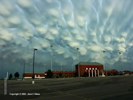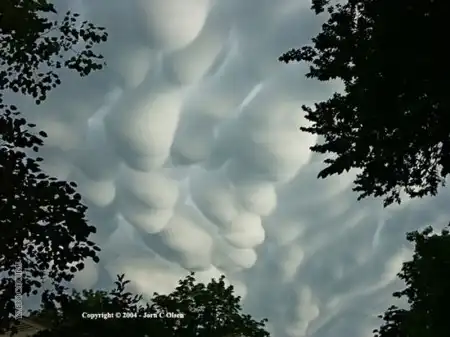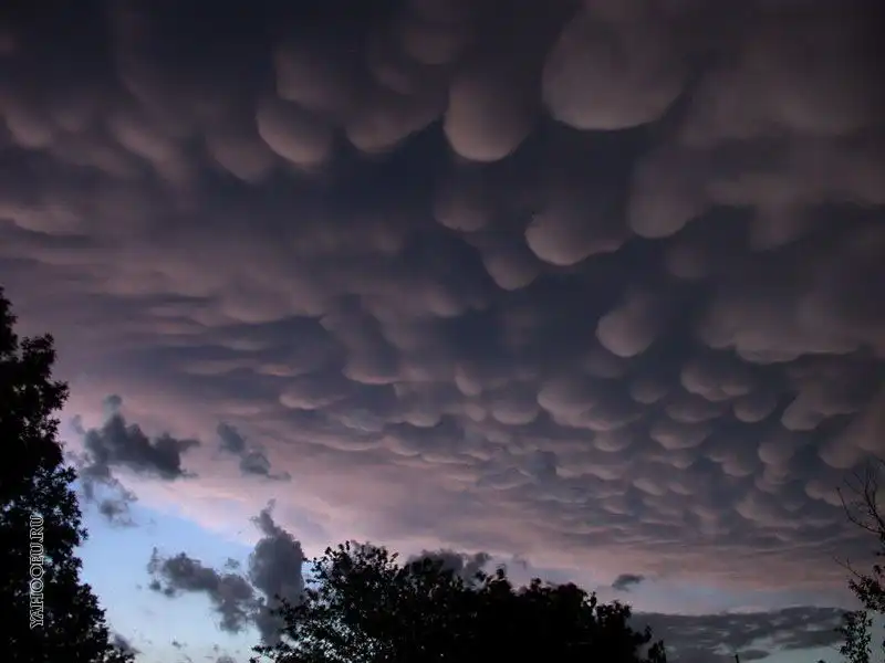 В теплое время года после прохождения грозового шторма на небе иногда можно наблюдать облака причудливой формы, напоминающей вымя. В метеорологии «вымяобразные» облака носят название Mammatus (или Mammatocumulus), т.е. являются одной из разновидностей кучевых (Cumulus) облаков, имеющих ячеистую структуру и, как правило, расположенных под «материнским» кластером мощных кучевых или кучево-дождевых облаков. Обычно наблюдатель видит Mammatus в виде серых облаков с более темными как бы свисающими вниз элементами. Однако при низкой высоте Солнца над горизонтом (например, на закате) мамматусы могут приобретать серо-голубой, серо-розовый, золотистый и даже красноватый цвет.