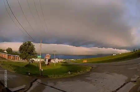 Эта разновидность отмечается тогда, когда в передней части надвигающегося облака образуется темный дугообразный облачный вал (состоящий обычно из завихренных, быстро несущихся cumulus fractus и stratus fractonimbus), происхождение которого сопровождается шквалом - внезапным резким усилением ветра.