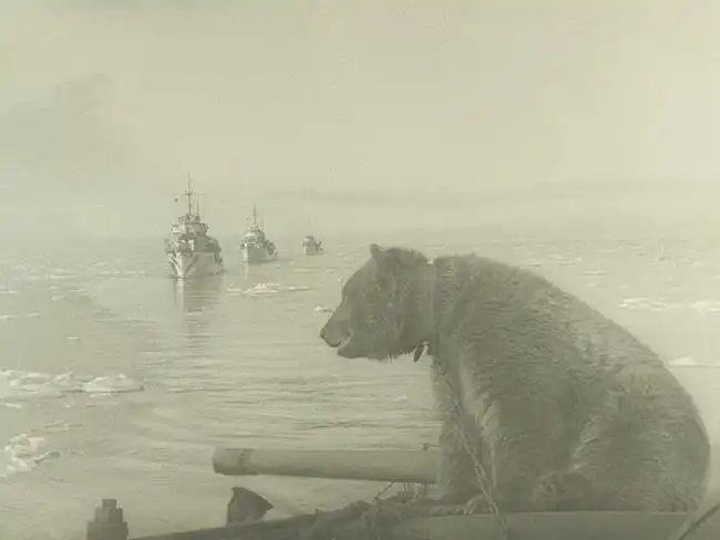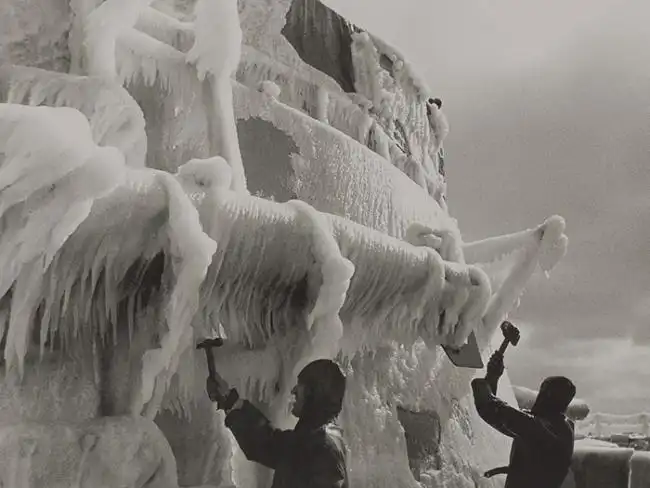 Очистка ото льда орудийной башни главного калибра линкора «Парижская коммуна».