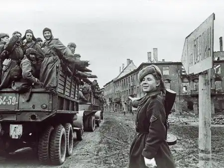 Жители освобожденного Кировограда встречают своих освободителей бойцов и офицеров Красной Армии.