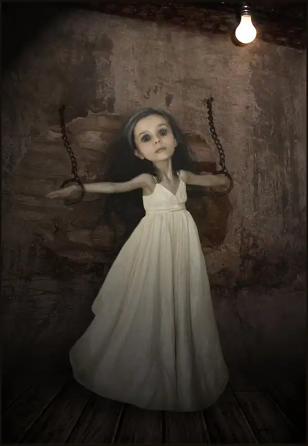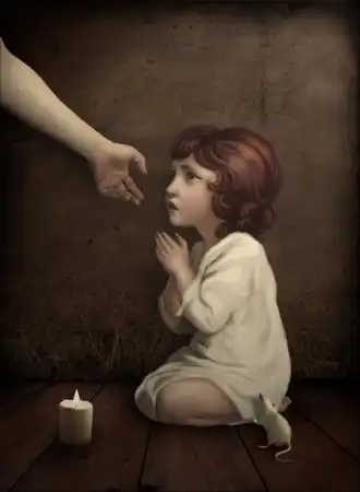 Странные, непропорциональные фото... Мне понравилась лишь одна. Крохотная девочка и протянутая у ней рука