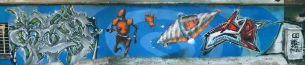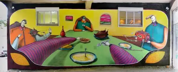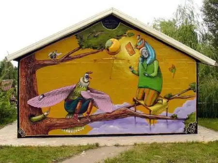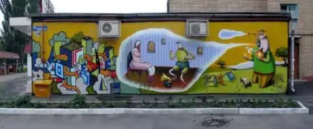 Понравилось граффити, где чувак лежит на одеяле загорает))) С юмором)