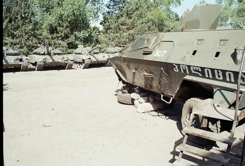 вчера вечером по РТР сюжет был в новостях. Так вот, когда груз. армия покидала места дислокации в [каком-то там, не запомнил] ущелье, то уничтожали они преимущественно американскую технику и оружие (на фотках есть этот момент с сожженными "Кольтами"), а оружие советского образца, что ли, забирали с собой.