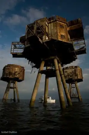 Это не нефтяные вышки, не персонажи кинохита Война миров, не ходячие роботы из Звездных войн, вполне реальные сооружения. Это - заброшенные морские форты Манселла, укрепления времен Второй Мировой войны, сооруженные в устьях британских рек Темзы и Мерси. За годы, прошедшие со времени окончания войны, люди забыли о них. Так и стоят они, ржавея и приходя в негодность. Впрочем, одна из таких башен в 60-х годах успела побывать студией пиратской радиостанции, а другой была уготована еще более удивительная судьба - стать независимым государством Силенд, королевской державой, покоящейся на платформе посреди моря.