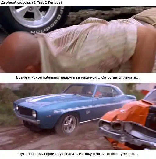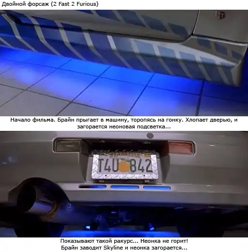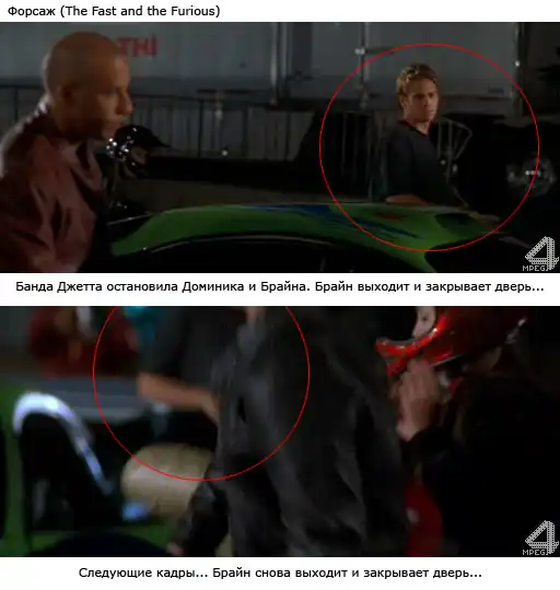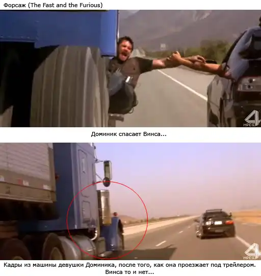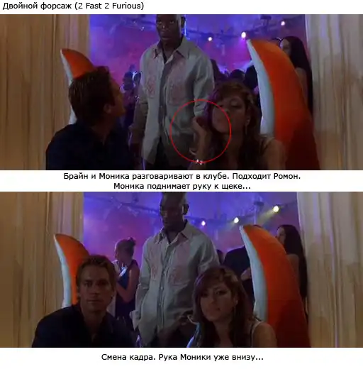 Например рука Моники, из 2-го форсажа. Ну и что что рука на следующем кадре опущена? Нормальный человек разве не может спокойно владеть рукой? Бред!