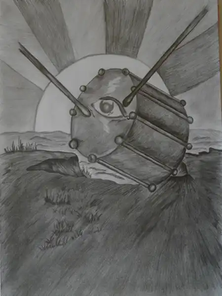 Все работы были выполнены мною в 12-13 лет, кроме картин: "Барабан" и "Рыбка".