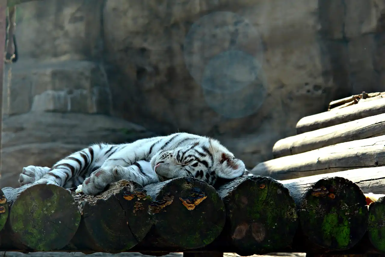 Вся семья тигров альбиносов дремала после плотного обеда.