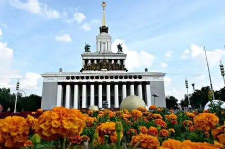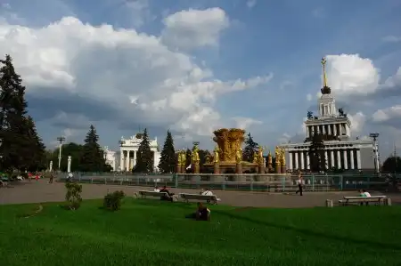ВДНХ. Огорчает состояние. Даже фонтан не работал, а второй и то загородили (теперь по 350RU днем и вечером за 1000RU - танцующие фонтаны)