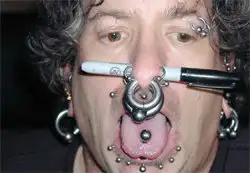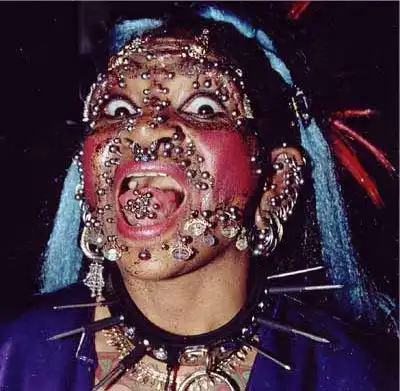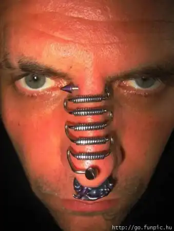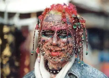 Блин, вот зачем так над собой издеваться то??? ладно, если пара пирсов на лице, мне это даже нравится, ну а стооолько.... это просто больные люди!
