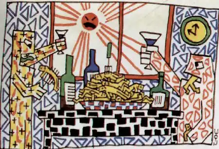 Он же был не художником, а музыкантом! По каждому рисунку видно, что рисовал его человек с неординарным мышлением, очень талантливый, которы смотрит на мир через "свои очки".