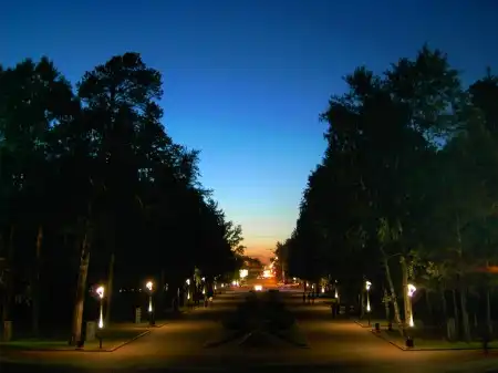 Собака, аллея вдоль забора, вид с педестала на лагерном в сумерках - просто супер! Остальное так себею