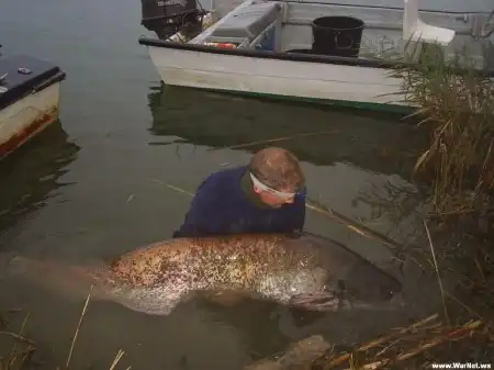 Он этого сома с ружья наверное епанул с дробью на медведя причем