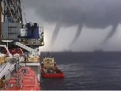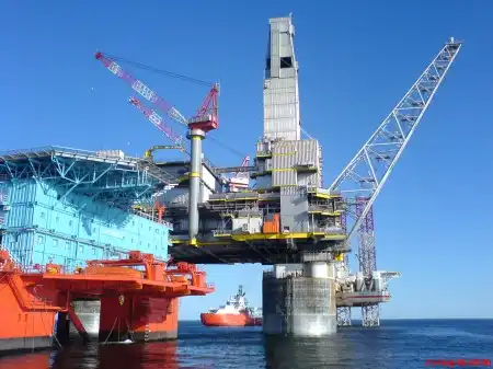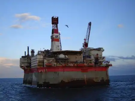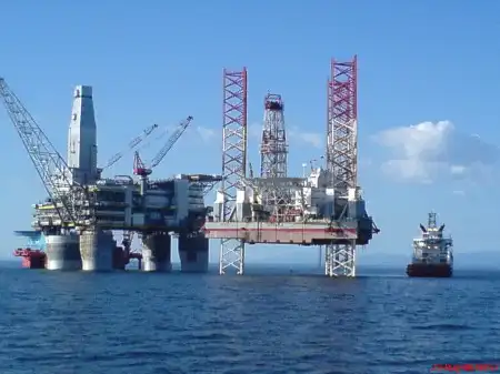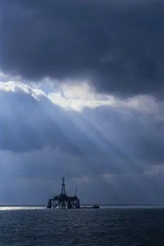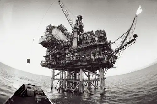 «Надо сказать, что нефтяная вышка - одно из наиболее величественных творений промышленного капитализма. Самые первые были деревянными, но сегодня это - стальные сплетения, похожие на остовы недостроенных небоскребов. Мачта поднимается на 170 футов над бурильной палубой. Высоко на площадке рабочие выводят на позицию новую 100-футовую секцию трубы,... на палубе ее привинчивают к предыдущей, а затем бурильщик включает башенный мотор и начинает травить крутящуюся трубу в землю. Бурение обходится в 100-200 тысяч долларов в день,взависимости от локации, и работы ведутся круглые сутки.».