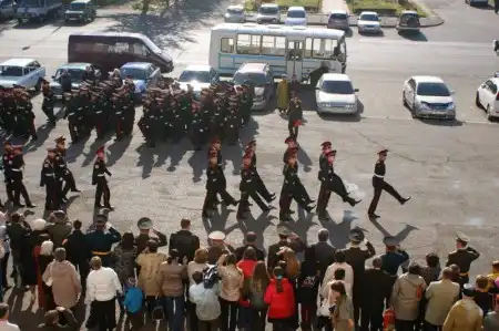 Эти кадеты у меня мимо дома почти каждый день ходят и горланят песни.