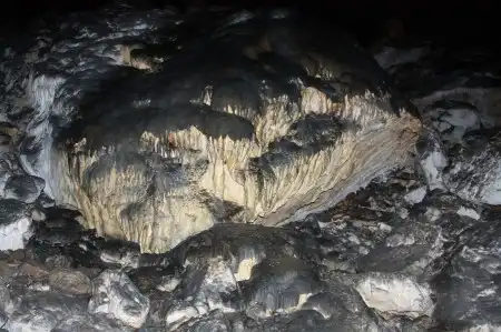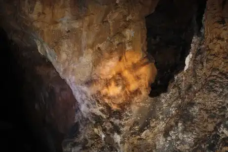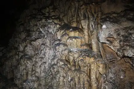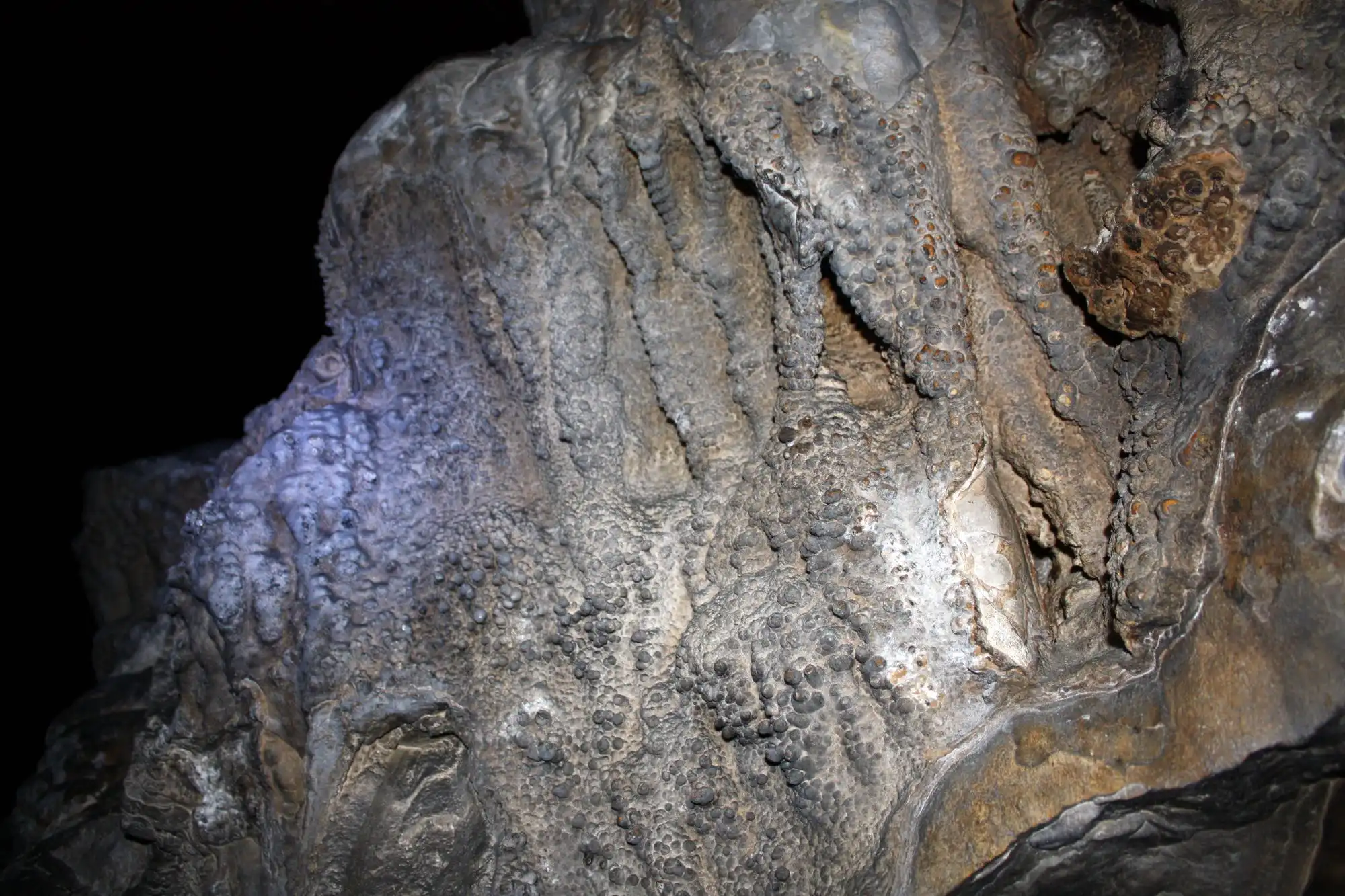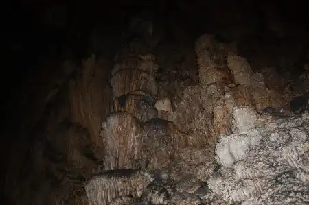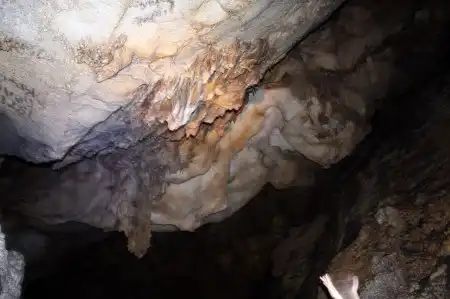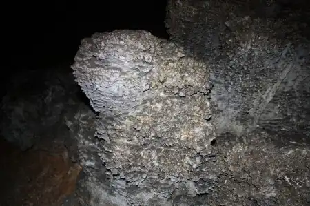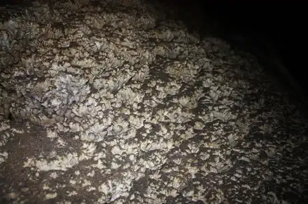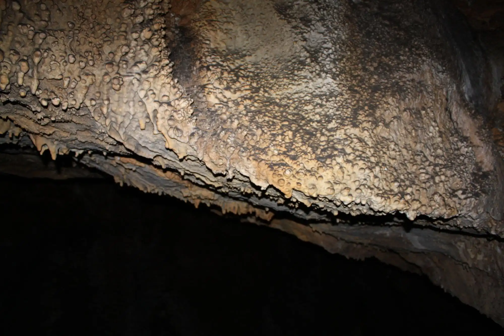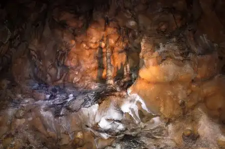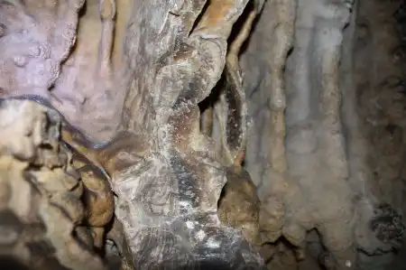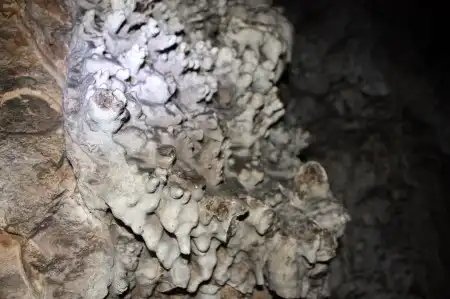 кругом всякие начетные образования на стенах сама пещера находится в отложениях кембрийских известняков, а натечные образования вроде как арагонит, хотя реакцию с соляной кислотой я не проводил