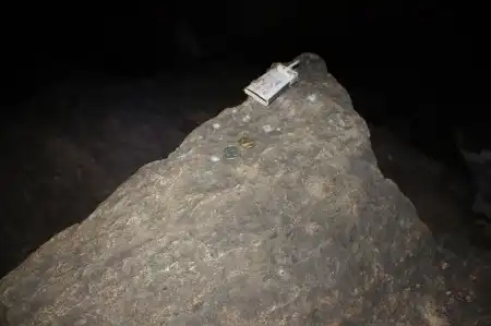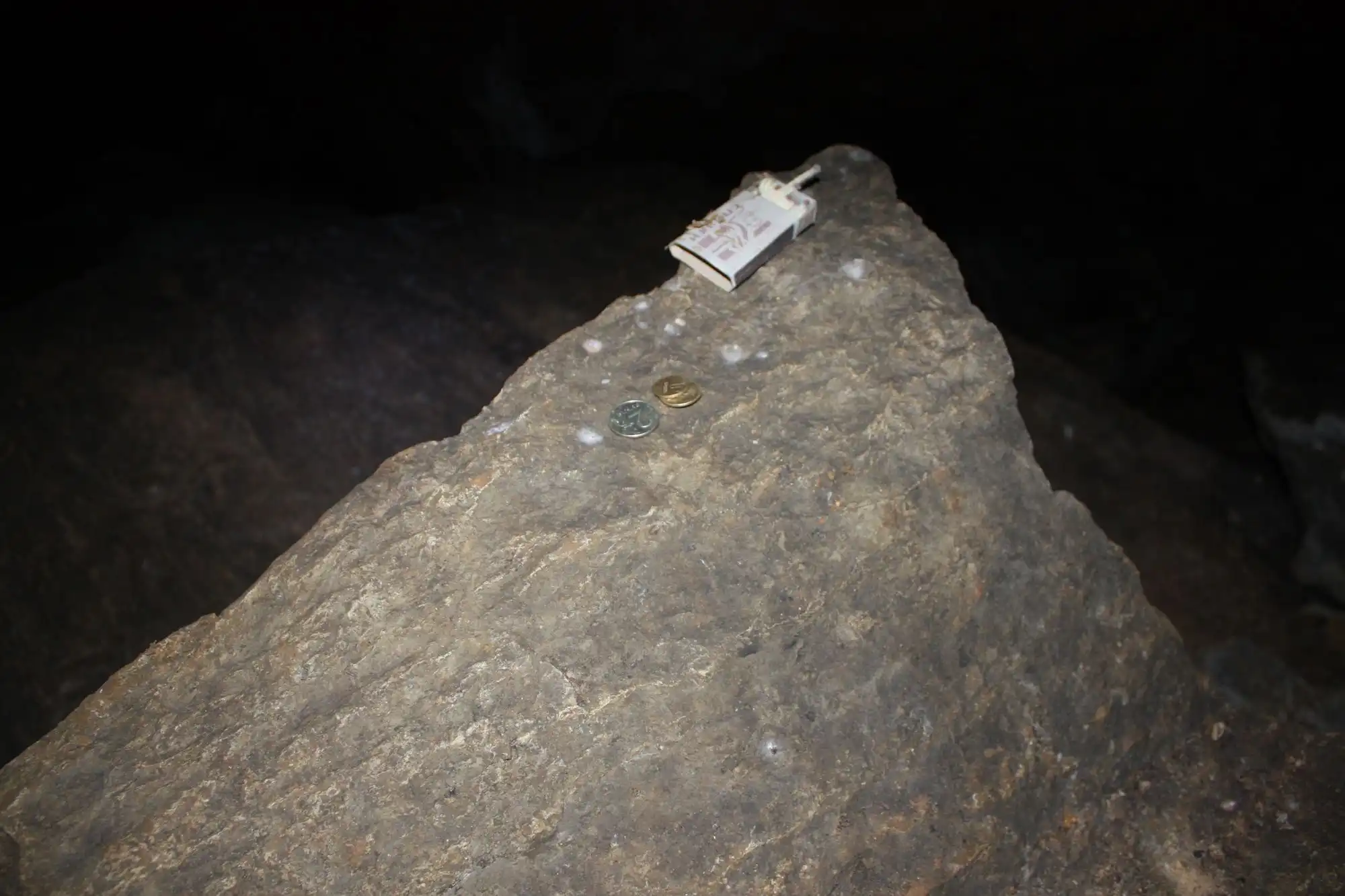 мусор которые оставляют в пещере туристы, ИДИОТСКАЯ мода оставлять везде где был монетки, не первый раз с этим встречаюсь!