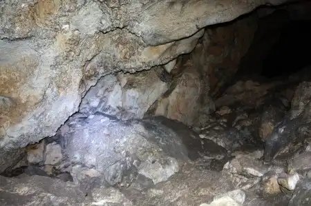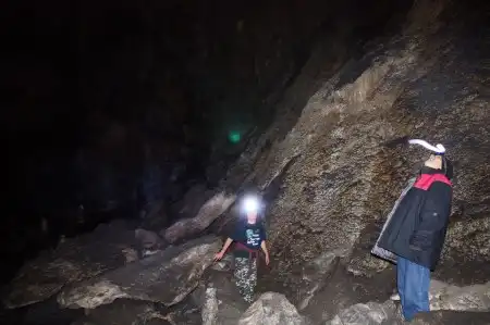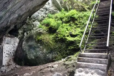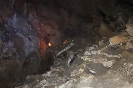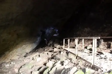 видна тропа ведущая в пещеру, с другой стороны пещеры есть выход, но, что бы там выйти необходимо специальное снаряжение