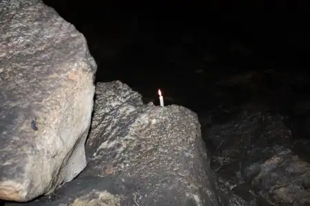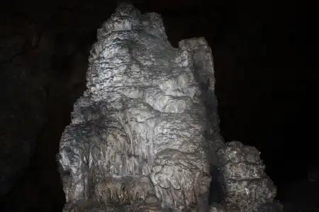 если я правильно прочел схему пещеры и правильно работает воображение - это сталагмит "Пагода" (т.к. похож на буддийский храм), в гроте "Храмовый"