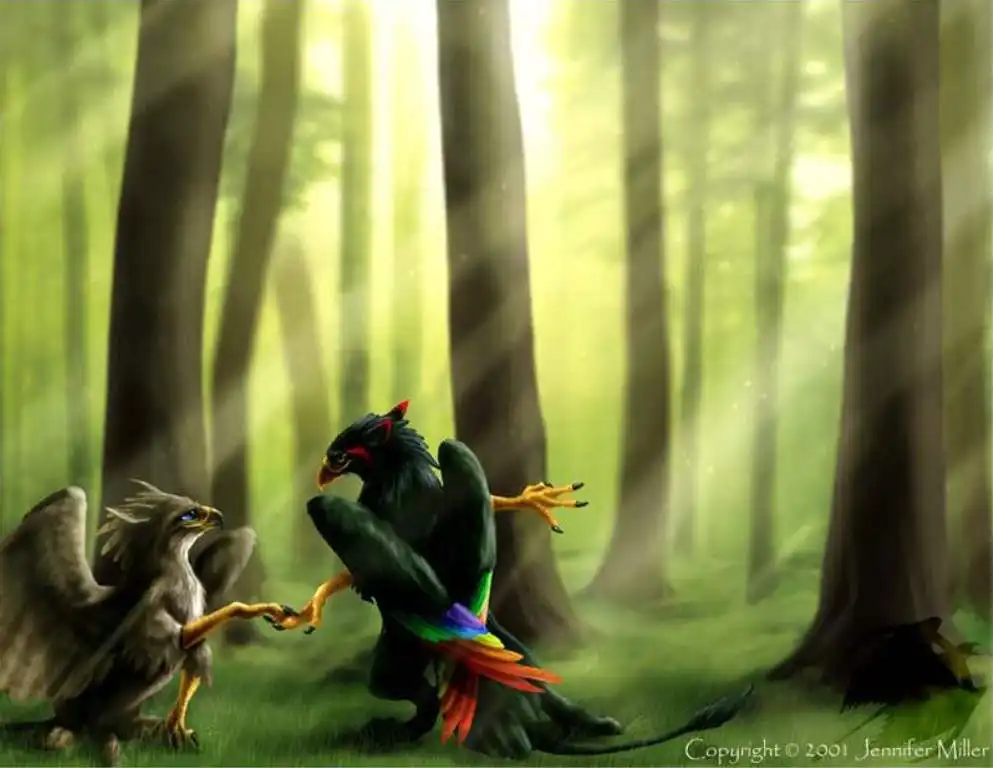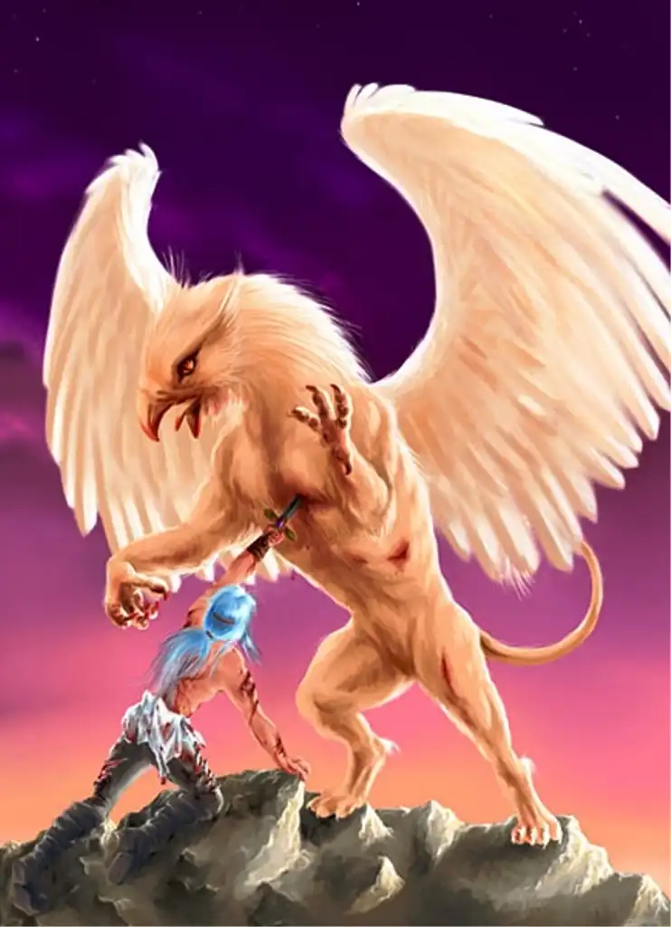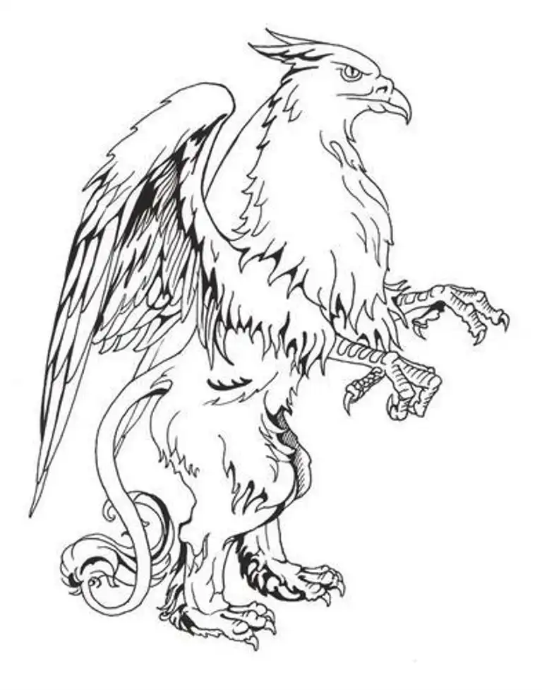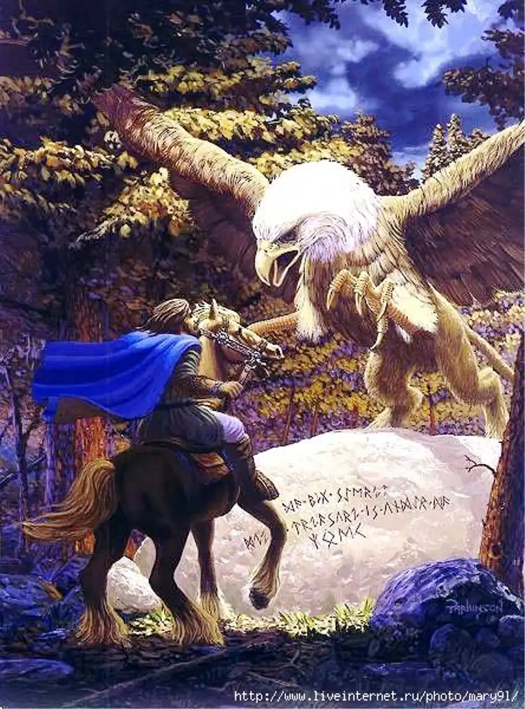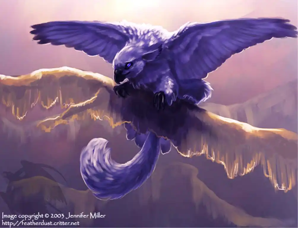 Грифон - фантастическое, мифическое существо, полуорел-полулев, с длинным змеиным хвостом. Он символизирует господство над двумя сферами бытия: землей (лев) и воздухом (орел). Образ грифона объединял символику орла (быстрота) и льва (сила, отвага). Сочетание двух главнейших солнечных животных указывает на общий благоприятный характер существа - грифон олицетворяет Солнце, силу, бдительность, возмездие.