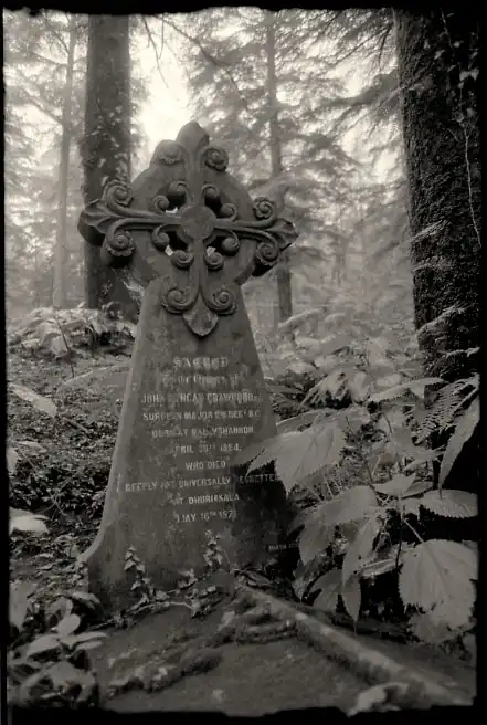 Но рядом со всем этим бурлящим возбуждением существует тихий заброшенный уголок - старинное английское кладбище. Почти никто не помнит о том, что в колониальные времена Дхарамсала была одним из популярных мест летнего отдыха работников английской администрации. В дни летней жары англичане целыми семействами приезжали в горы, стремясь к прохладе и зелени. Трагична история многих английских семейств по роду службы или из за авантюризма устремившихся из тихой Англии в далекую Индию. От эпидемий загадочных туземных болезней они вымирали целыми семьями в течении нескольких дней. Об этих далеких временах (18 век) повествуют грустные надписи на надгробных камнях. На кладбище есть и церковь в которую по выходным дням все еще приходят несколько почтенных местных семейств.