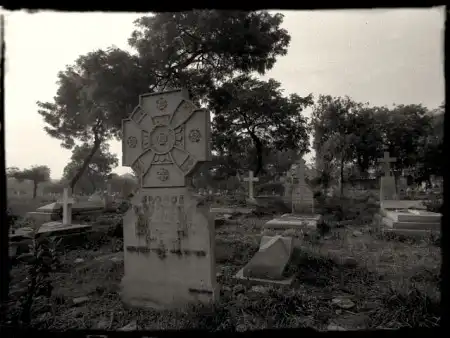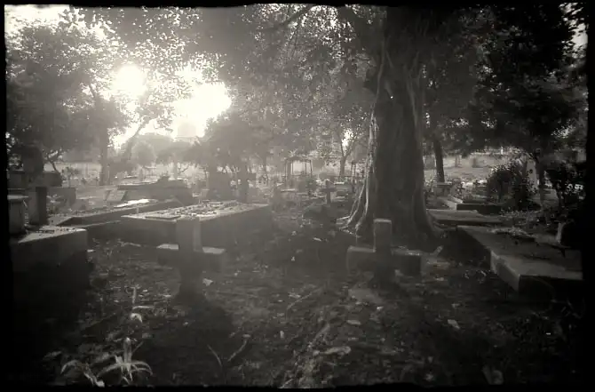 Кладбищенская ограда надежно укрывает могилы от городского шума. Здесь хоронили англичан - работников колониальной администрации и членов их семей. Примечательно, что многие надгробия украшены франк-масонской символикой. Большинство могил 19 века.